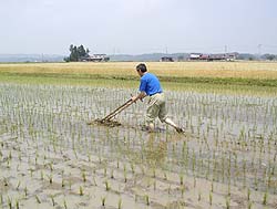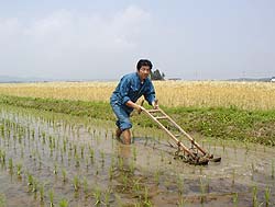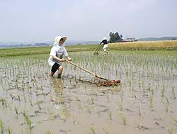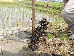 ご苦労様です。除草機を押した事で土の中に酸素が入り稲の生育がスコブル良くなります。